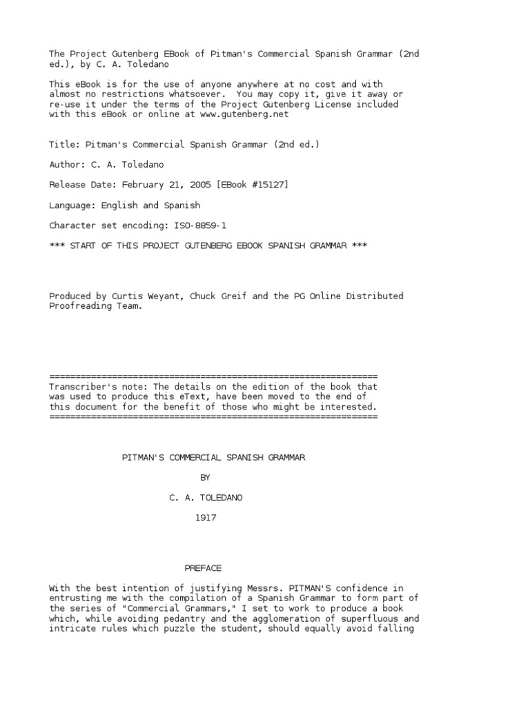 Pitman S Commercial Spanish Grammar 2nd Ed By Toledano C A